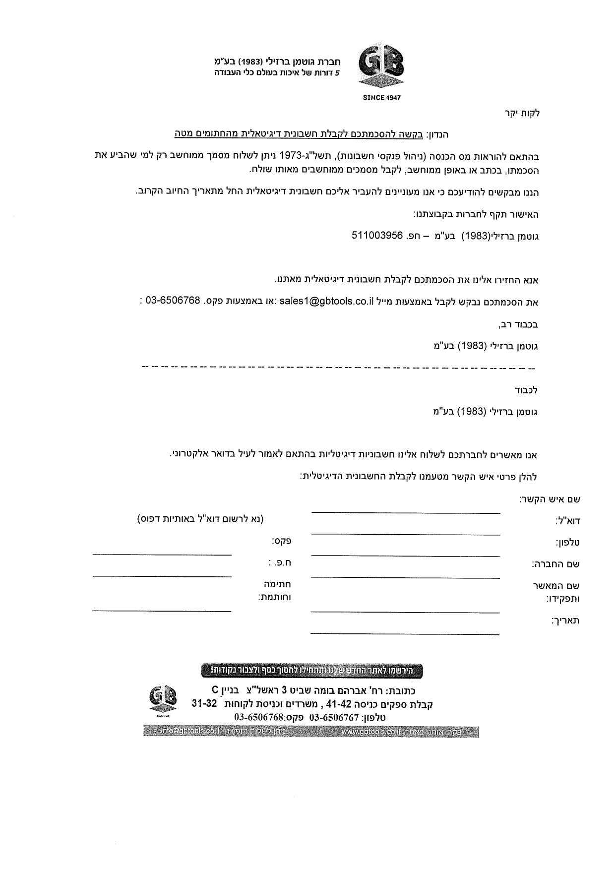 הסכם לקבלת חשבונית דיגיטלית