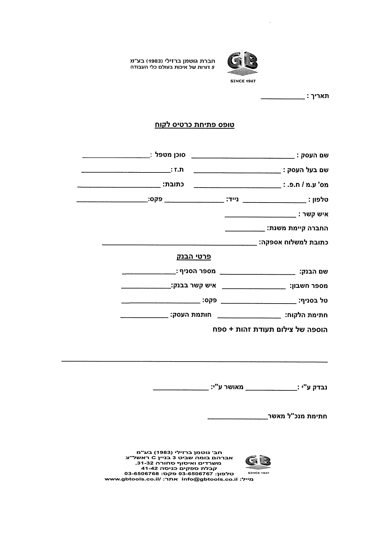 טופס פתיחת כרטיס לקוח