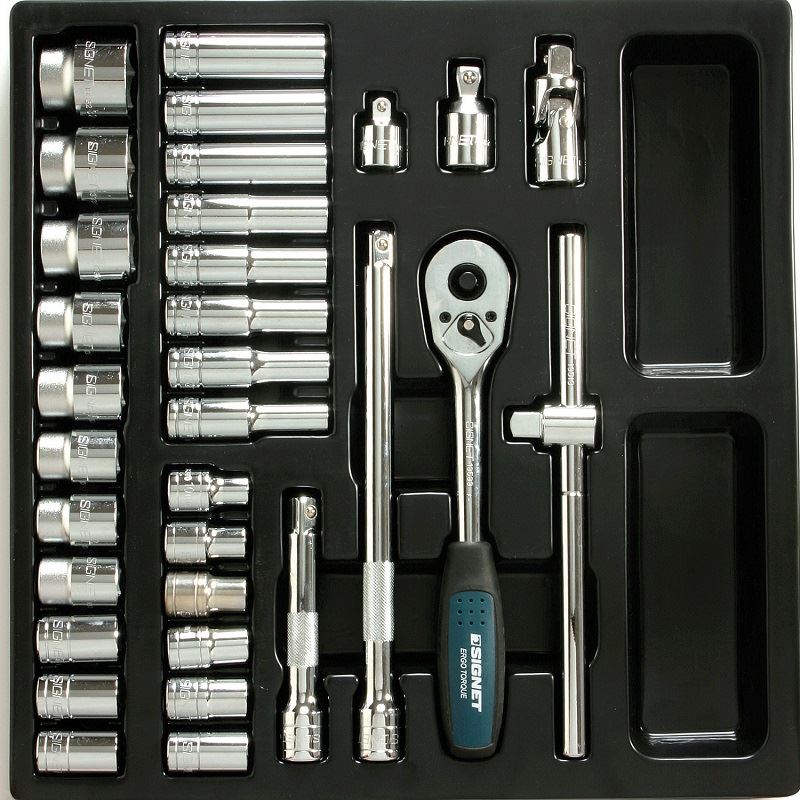 סט בוקסות "1/2 מעורב 32 י"ח מידות מגש רחב:375x390 מ"מ, קצר:10,11,12,13,14,15,16,17,18,19,20,21,22,24,27,30,32, עמוק:10,11,12,13,14,15,17,19 פרק אוניברסלי, מאריך כדורי 2", מאריך 5",ידית רצ'ט פלסטי, מאריך 10",מעבר ז.3/8 נ.1/2 ידית T מקט:055516 SIGNET