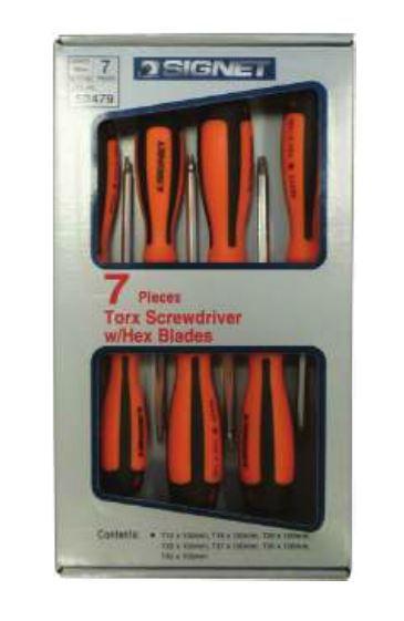 סט מברג טורקס + חור 7 יחידות, תחום עבודה: T10-T40, מקט: 052479 SIGNET