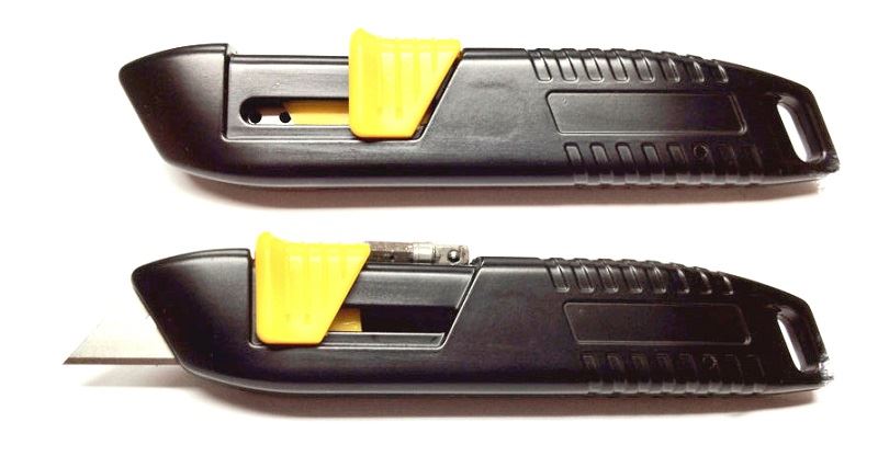 סכין יפני מקצועי בטיחותי עם להב דו צדדי, גוף מתכת, קפיץ בטחון להחזרת הלהב בצורה אוטומטית, מקט:XTAR
