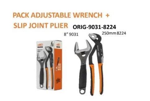 קיט של שני פריטי הדגל של BAHCO. פלייר משאבה פתיחה מהירה יד אחת אורך כללי "10 ומפתח שבדי ידית מצופה גומי נגד החלקה ולבטיחות מירבית ונוחות המשתמש. שבדי באורך "8 אך בעל פתיחה רחבה של 38 מ"מ תוצרת BAHCO