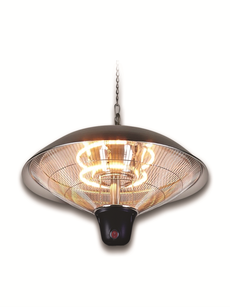 תנור חימום פטריה תלויה 2000W עם שלט הוא תנור חימום עוצמתי בעוצמת 2000 וואט, שניתן להתקנה תלויה מעל אזור ישיבה. מגיע עם שלט רחוק לשליטה נוחה על חום ואופציות חימום. מתאים לשימוש חוץ כמו מרפסות, גינות או מסעדות.