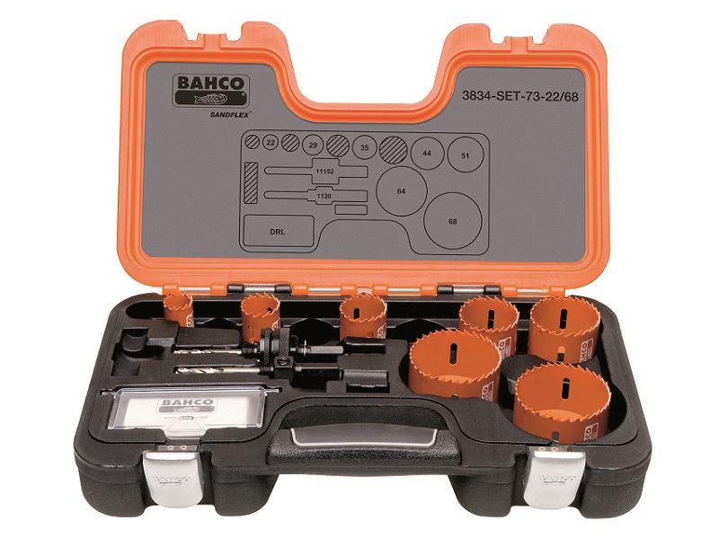 • סט משור / מסורי/ משור / משור / מסור / משור / מסורי כוס בי-מטל Sandflex הכולל גדלים סטנדרטיים באיחוד האירופי המקובלים בתעשיית התקנות החשמל. BAHCO