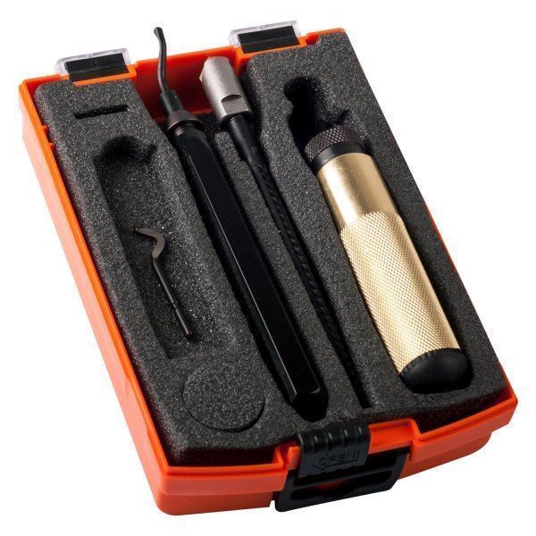 The easiest and fastest way to hand deburr aluminum material. The kit contains 6 multi-purpose tools for deburring and chamfering a wide range of aluminum works. Kit contains: Aluminum handle F holder F12 Inner Countersink for chamfering hole edges up to 12mm (0.47") in diameter MB2000 handle E200 replaceable blade for clockwise & counterclockwise deburring E300 replaceable blade for simultaneous inner and outer deburring.Vargus