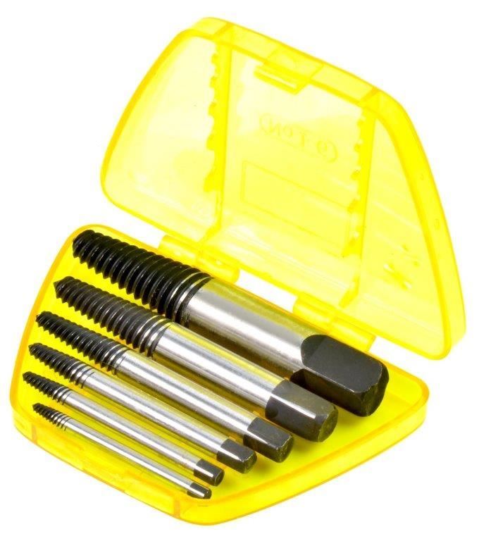 Extractor Bit Set, 6pcs :250g • Made of chrome molybdenum • Heat treated • Quick and easy way to remove broken screws, pipe bolts and studs 6 Extractor Bits 1/8", 1/4", 5/16", 7/16", 9/16", 3/4 whirlpower