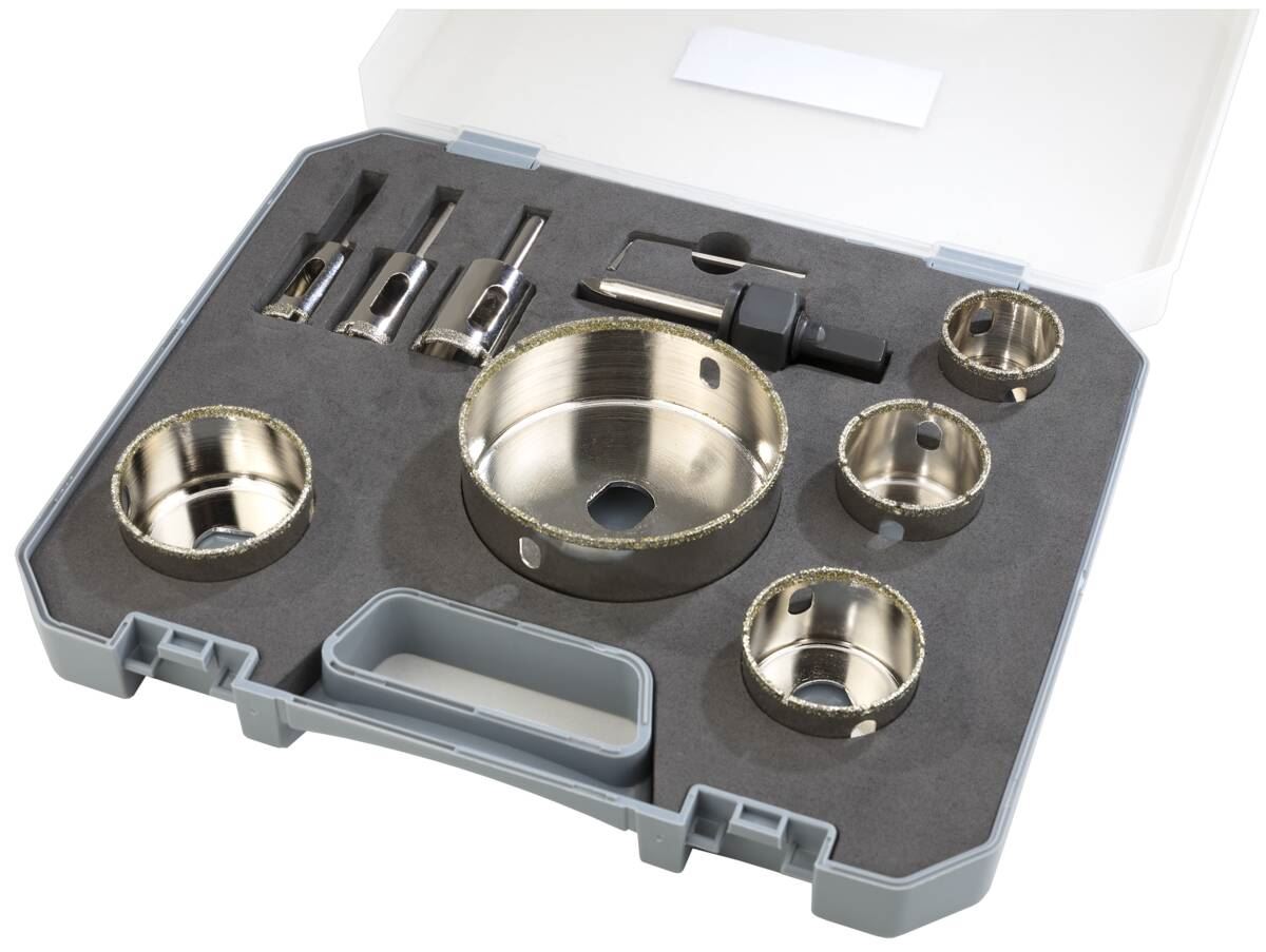סט מקדחי כוס מעולים הכולל 9 יחידות במארז קשיח ואיכותי . הסט כולל מוביל עם קנה משושה 9 מ"מ וראש חץ עליו יולבשו 5 מידות של מקדחי כוס במידות : 82 מ"מ , 50 מ"מ , 43 מ"מ , 38 מ"מ , 32 מ"מ .בנוסף כלולת בסט 3 מידות של מקדחי כוס עם מוביל אינטגרלי , משושה מובנה במידות 25 מ"מ , 22 מ"מ , 18 מ"מ .כאמור הסט כולל מוביל ומפתח אלן. חומר הגוף : C45 בציפוי ניקל. הסט מיועד בעיקר לשימוש בקידוח חורים באריחי קיר , אמבטיה או מראות וזכוכית. הסט מתאים לשימוש מקצועי ולשימוש בייתי DIY.