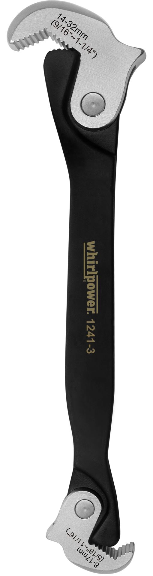 מפתח מולטי ורב שימושי עם צד אחד לחיים קטנות לתפיסה במרווח מידות 7-18 מ"מ ( "11/16-"5/16 ) . צד שני לחיים גדולות לתפיסה במרווח מידות 14-32 מ"מ ( "11/4-"9/16 ) . לחיים מוקשות . השימוש במפתח ביד אחת . מיוצר מפלדת כרום וונדיום . שיניי לחיי המפתח מונעות החלקה בזמן העבודה . מתכוונן מעצמו ובפעולה מהירה . מיועד לפתיחת ברגים, אומים , חלודים ושחוקים , עם ראש משושה עגול ,טורקס , אלן ועוד . מתאים לשימוש באפשרויות שונות : ראש מפתח הנעה ריבועית "3/8 , ראש מפתח הנעה ריבועית "1/2 . יצרן : WHIRLPOWER