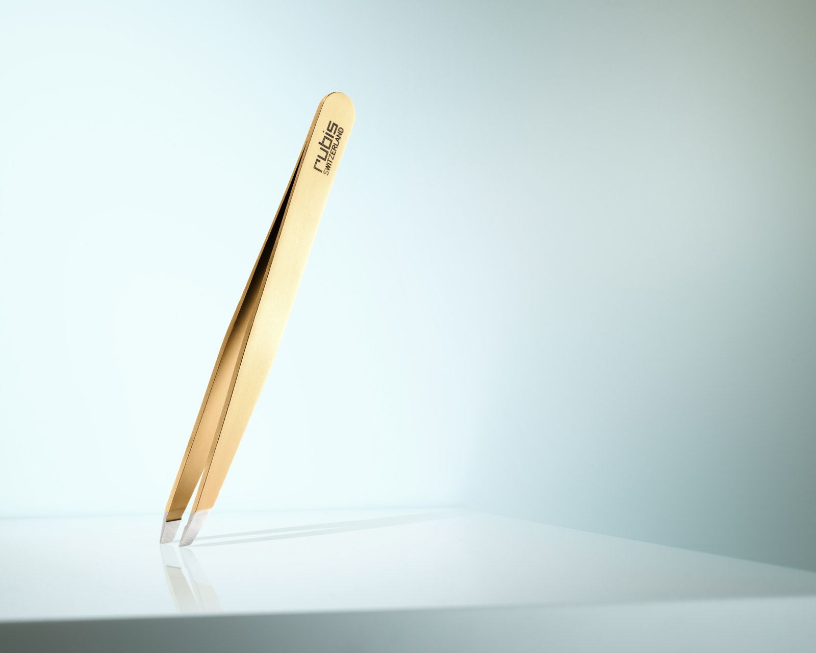 פינצטה זהב קלאסית RUBIS עשויה נירוסטה ומצופה זהב עם קצוות משופעים