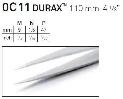 פינצטת 0C-11-DURAX, אורך 110 מ"מ עם קצה חד, פינצטה ישרה וחלקה RUBIS, פינצטה רוביס