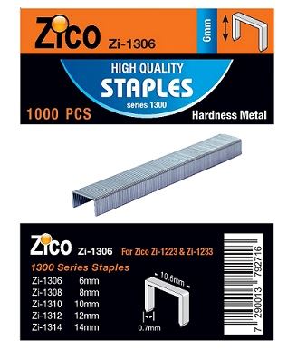 עומק הידוק של 6 מ"מ קשיות מתכת 1000 יח'\קופסה תכונות גודל סיכות: אורך רגל: 6 מ"מ רוחב: 10.6 מ"מ עובי חוט: 0.7 מ"מ רובי סיכות מתאימים: Zico ZI-1223 ZI-1233 מותאם ל: Rapid R13 Staple Series 6 מ"מ ZICO