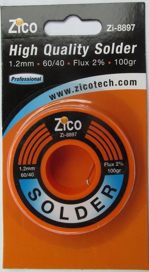 בדיל איכותי בגליל 60/40 משקל 100 גר אריזת בליסטר ZICO