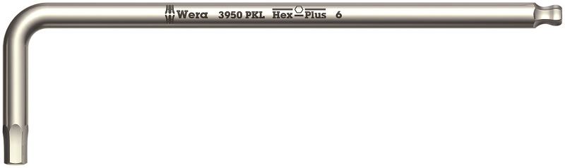 מפתח L (אלן) 3950 PKL , מטרי, פלדת אלחלד. יישום: בורגי שקע משושים(אלן), עיצוב: פלדת אלחלד, קצה: Hex Plus משושה קצה כדורי על זרוע ארוכה WERA