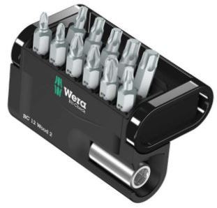 סט 12 חלקים , 11 ביטים WERA ומוביל - 899/4/1 1 x 899/4/1 K, 1/4"x50;851/1 Z PH 1 x PH 2x25;855/1 Z PZ 1 x PZ 1x25; 2 x PZ 2x25; 1 x PZ 3x25;867/1 TORX® 1 x TX 10x25; 1 x TX 15x25; 1 x TX 20x25; 1 x TX 25x25; 1 x TX 30x25; 1 x TX 40x25;