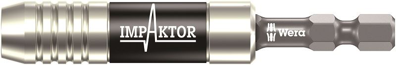 מחזיק 897/4 IMP R Impaktor עם טבעת עוצרת ומגנט WERA. מחזיק אימפקטור מרכך שיאי עומס קיצוניים. מתאפיין באפקט פיתול מיוחד הודות לקפיץ פיתול כפול, ומצויד בטבעת מגנט כדי להחזיק בקלות ברגים ארוכים וכבדים יותר. אידיאלי גם לעבודה מעל הראש, מתאים במיוחד לשימוש עם מברגות אימפקט. ניתן להכניס פנימה את המגנט ובכך לנטרל אותו. יישום:מתאים לביטים עם מוביל בעל ראש משושה 1/4" על פי DIN 3126 C 6.3 וסדרה 1 של WERA. עיצוב: טכנולוגית IMPAKTOR מבטיחה אורך חיים ארוך מהממוצע גם בתנאים קיצוניים הודות לניצול מיטבי של מאפייני החומר וגיאומטריה מתוכננת באופן אופטימלי(שני אזורי פיתול הפועלים בזה אחר זה), עם טבעת עוצרת ומגנט WERA. מוביל:משושה "1/4, מתאים להברגות עם תפסניות DIN 3126-F 6.3, ISO 1173