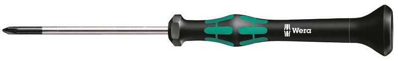 מברג 2050 PH לבורגי פיליפס ליישומי אלקטרוניקה, יישום: בורגי פיליפס, להב: עגול,עיצוב:ציפוי כרום, קצה שחור, ידית: Kraftform Micro עם מאפיין מונע סיבוב וכיפת סיבוב, רב קומפוננטי WERA