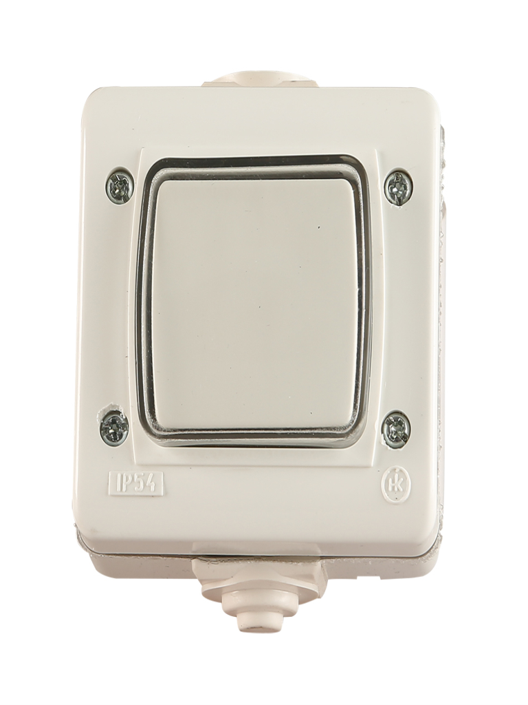 מפסק יחיד/חילוף מוגן מים IP54 NK עה"ט הוא מפסק חשמלי לשימוש חוץ, עמיד בפני מים ולחות עם דירוג IP54, ומאפשר שליטה על מעגל חשמלי אחד או יותר (חילוף).