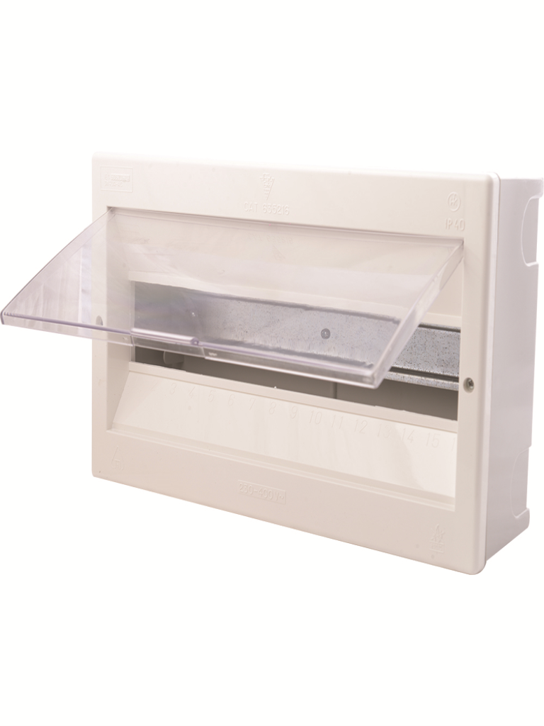 לוח עה"ט ל-16 חצי אוטומט עם קלפה – לוח חשמל המיועד למערכת עם 16 מפסקים חצי אוטומטיים (מגנים), כולל קלפה לסגירה והגנה נוספת, שמספקת גישה נוחה למפסקים ושמירה על בטיחות ועמידות.