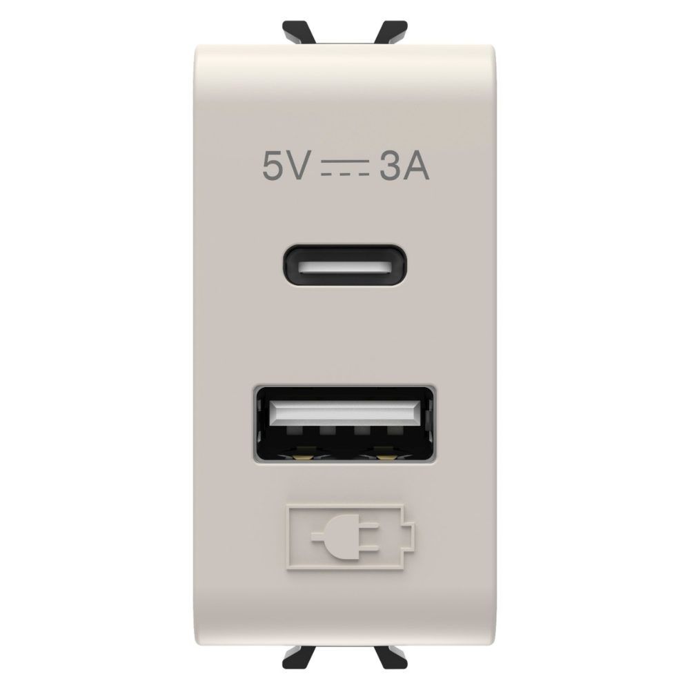 DUAL USB CHARGER A+C TYPE 5V 3A 1M BEIGE