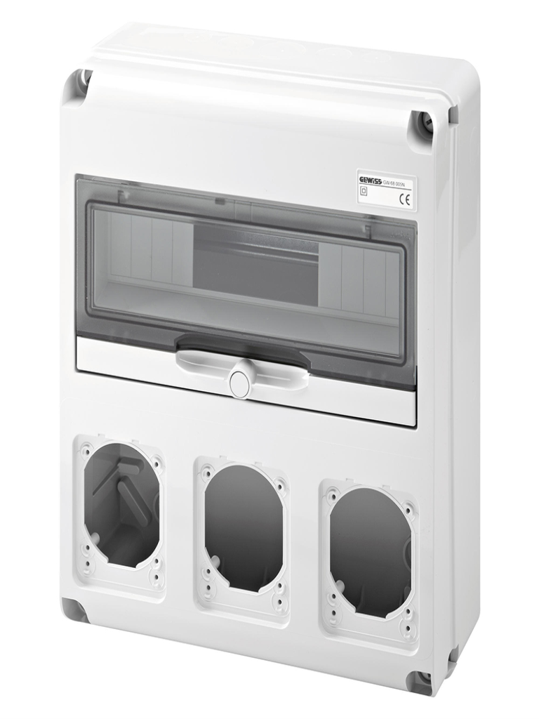 לוח Q-DIN 14 מודולים ו3 שקעים תעשייתיים (IEC), דרגת אטימות IP65.
