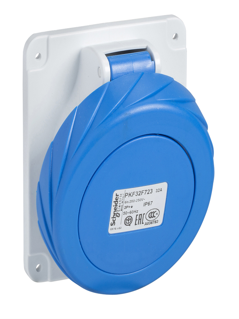 שקע תעשייתי זווית משופעת 2P+E להתקנה בפאנל - חיבור ברגים