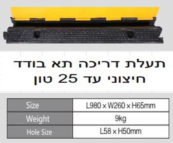 תעלת דריכה חיצונית עם תא בודד, באורך 98 ס"מ, רוחב 26 ס"מ, וגובה 6.5 ס"מ, מיועדת להנחת כבלים בצורה מסודרת ובטוחה.