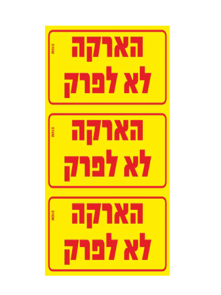 מדבקה PVC "הארקה לא לפרק" 8X4 (3 יח' במארז)