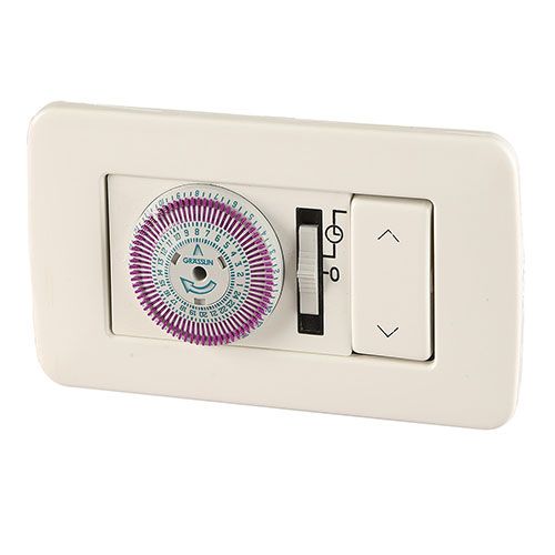 שעון ומפסק 4 מודולים מבית א. נתך, מיועד לשליטה על תריסים. כולל פונקציות של תזמון והפעלה/כיבוי, לניהול נוח ויעיל של התריסים.