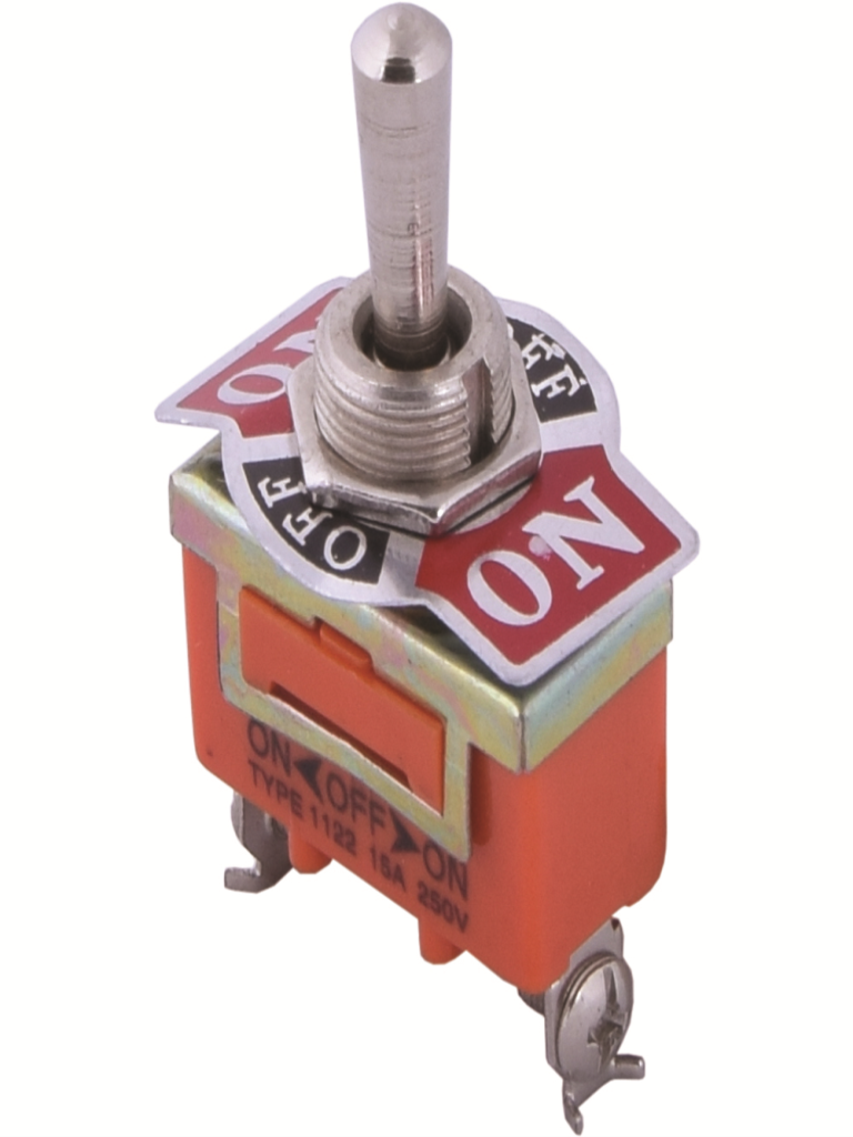 מפסק טוגל 1P 15A ON/OFF/ON הוא מתג טוגל חד-פאזי עם אפשרויות מצב ON, OFF ו-ON נוסף, ומסוגל לשאת זרם של עד 15A.