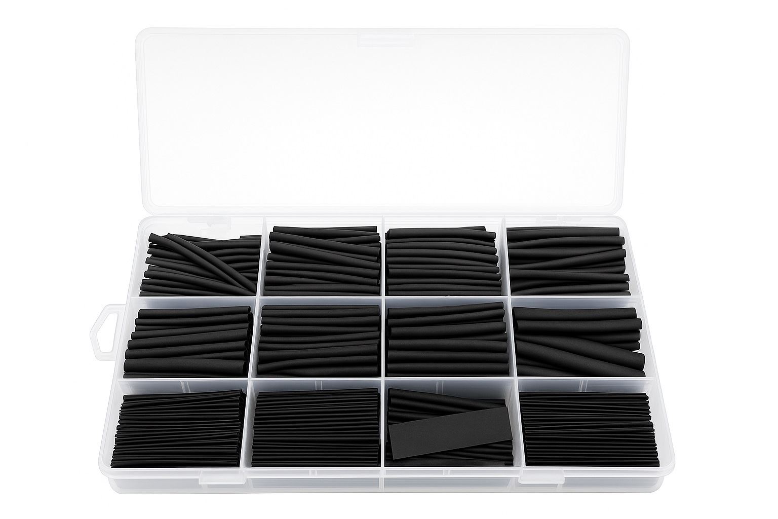 שרוולים מתכווצים – שחור | סט 530 יחידות תיאור כללי סט מקיף של שרוולים מתכווצים (Heat Shrink Tubing) בצבע שחור, מיועד לבידוד, סימון, איגוד והגנה על חיבורים וכבלים חשמליים/אלקטרוניים. מתאים לשדה ולמעבדה, לרכב, תקשורת, בקרה ותעשייה קלה. מתכווץ באופן אחיד בחימום ומספק גימור נקי, עמיד וחזק. תועלות עיקריות - בידוד חשמלי משופר והפחתת סיכוני קצר.