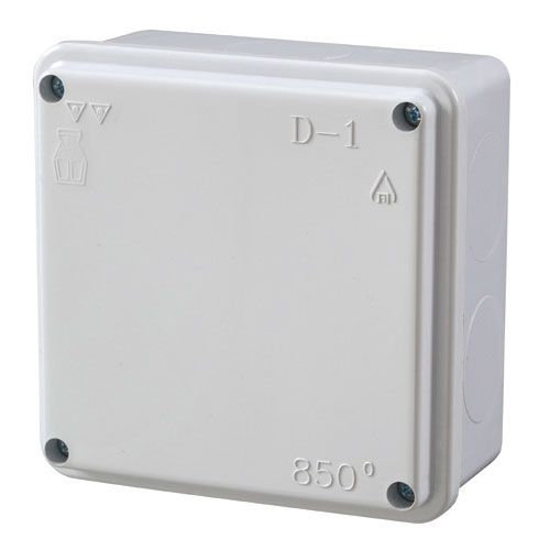 קופסה אדומה חלקה מדגם D-1 בגודל 100X100X50 מ"מ ומותקנת חיצונית על הטיח. המוצר מיוצר על ידי המותג עדא פלאסט.