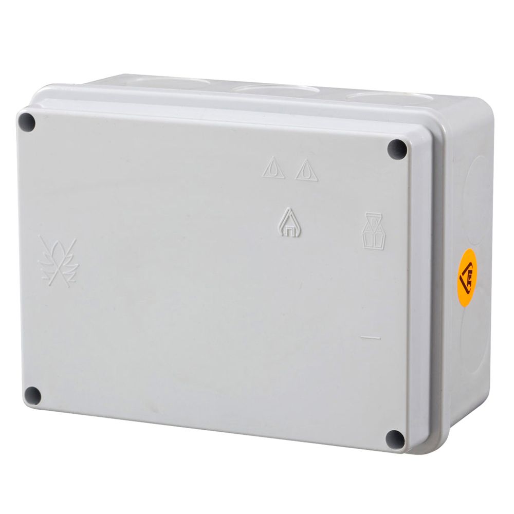 קופסת חיבור דגם D-24P בצבע אפור, במידות 154x114x70 מ"מ, המתאימה להתקנה חיצונית על הטיח. עם דרגת אטימות IP55 ותו תקן ישראלי.