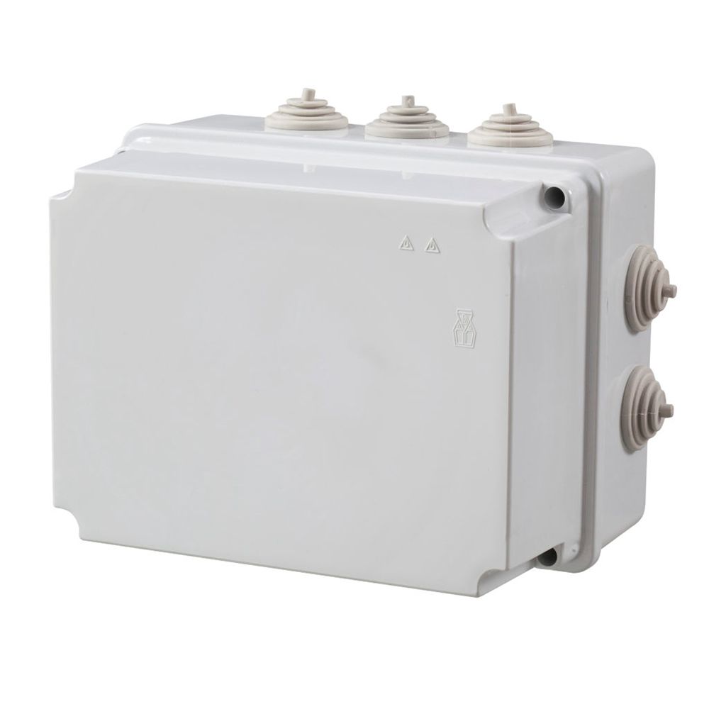 קופסת התקנה חיצונית D-2 אפור בגודל 190x150x130 מ"מ, עשויה פוליקרבונט ועם דרגת אטימות IP55. תוצר ישראלי עם תו תקן ישראלי.
