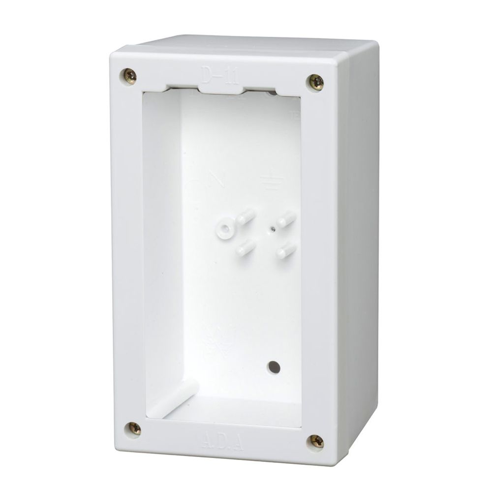קופסא לבנה מפוליקרבונט בדגם D-11 עם 2 מקומות . מתאימה להתקנה חיצונית על הטיח ומשמשת כעמדת עבודה מודולרית.