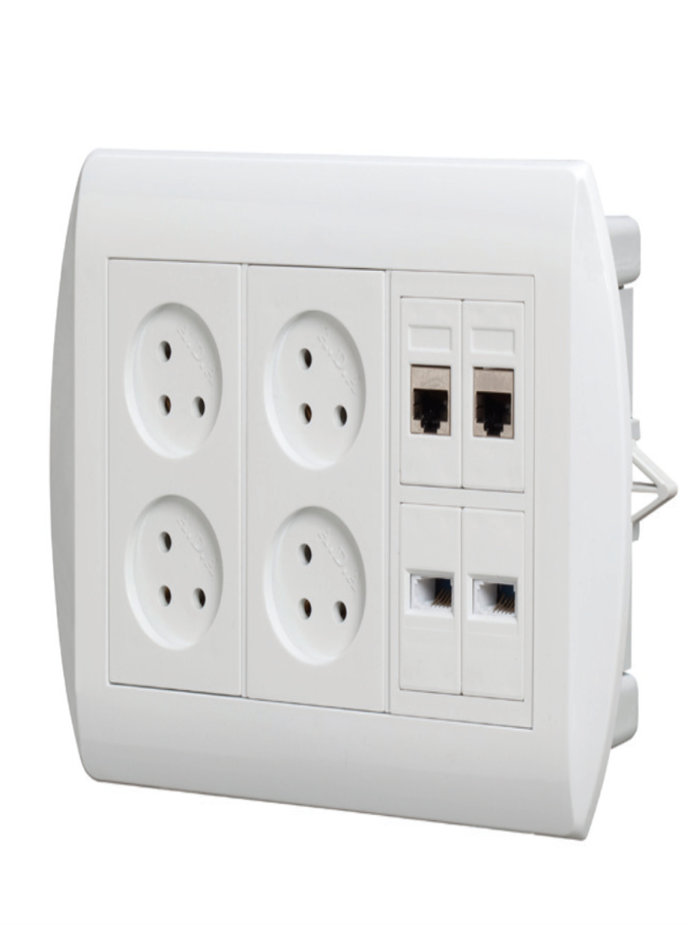 קופסת חשמל דגם D-17 עם ארבעה מקומות שקע כח בצבע לבן ומתאם. כוללת מתקנים ואישורים בתקן ישראלי ומיועדת להתקנה תחת הטיח. מתאימה לעמדות עבודה מודולריות ומיוצרת על ידי המותג עדא פלאסט.