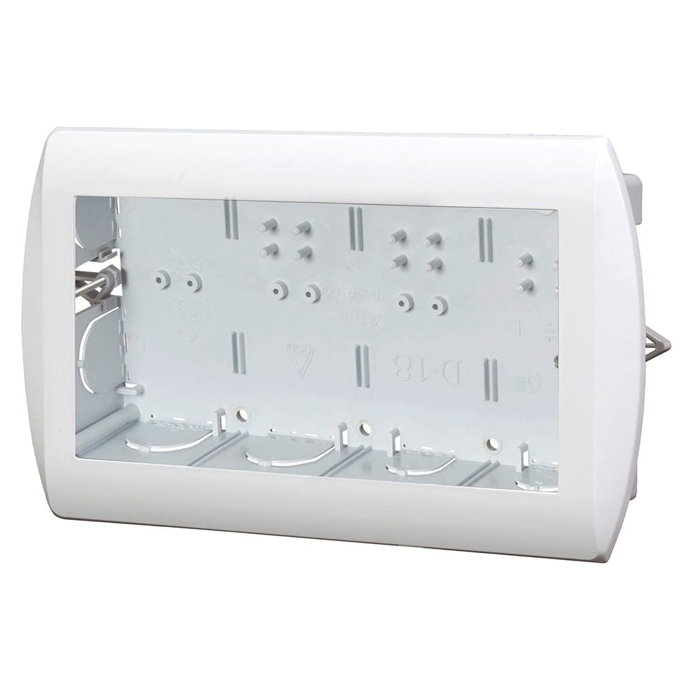 קופסת חשמל D-18 עם 8 מקומות ריקים לתקעי חשמל  וכוללת מידות עומק 70 מ"מ, רוחב 165 מ"מ ואורך 280 מ"מ. מיוצרת בישראל ועומדת בתקנים ואישורים ישראליים. מיועדת להתקנה תחת הטיח ומגיעה בצבע לבן. מיועדת לשימוש בעמדות עבודה מודולריות.