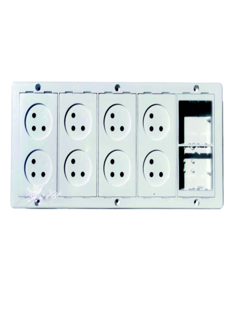 קופסא D-19 מותקנת עהט וכוללת 8 שקעים לבן ומת' מהמותג גוויס. הוא משווק תחת קטגוריית עמדות עבודה מודולריות ומיוצר על ידי המותג עדא פלאסט.