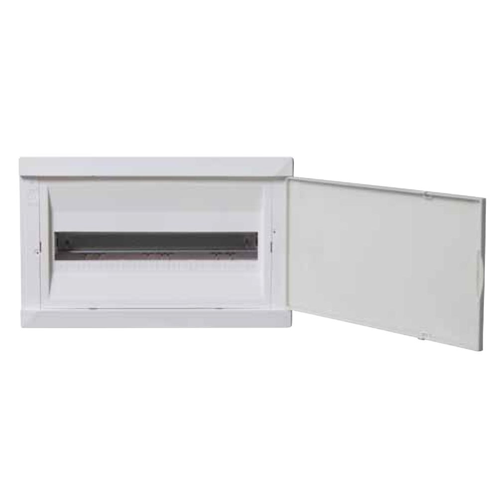 לוח עם 18 חצאי אוטומט ודלת אטומה, מתאים להתקנה תחת הטיח. מיוצר על ידי עדא פלאסט, ומגיע עם תו תקן ישראלי