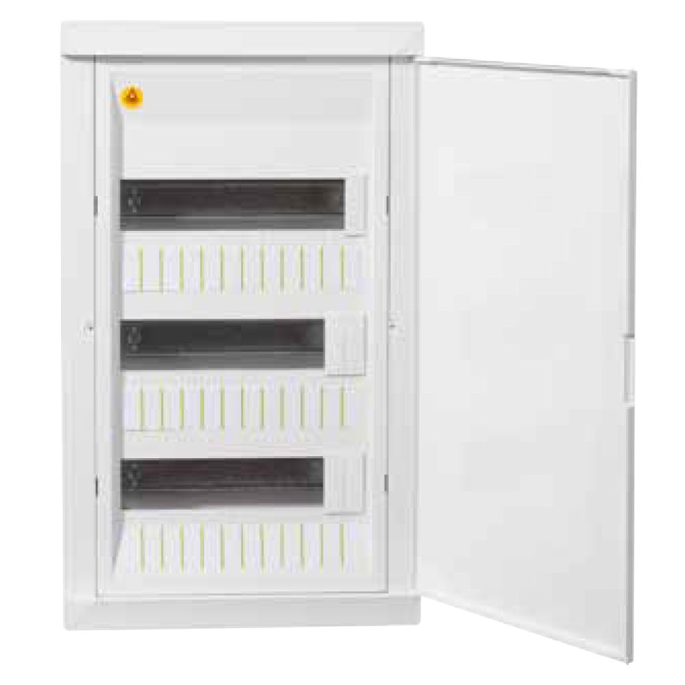 לוח עם 36 חצאי אוטומט ודלת אטומה, מתאים להתקנה תחת הטיח. מיוצר על ידי עדא פלאסט וכולל תו תקן ישראלי.