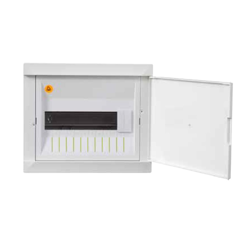 לוח ל-12 חצאי אוטומט עם דלת לבנה, מתאים להתקנה חיצונית על הטיח לארונות.