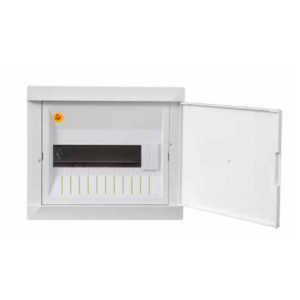 לוח ל-12 חצאי אוטומט עם דלת לבנה, מתאים להתקנה חיצונית על הטיח לארונות.