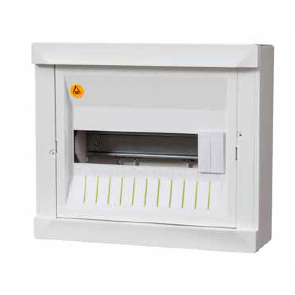 לוח ל-12 חצי אוטומט ללא דלת. המוצר מיועד להתקנה חיצונית על הטיח עומק הלוח הוא 100 מ"מ ורוחבו הוא 320 מ"מ, וגובה הלוח הוא 270 מ"מ. הוא משווק תחת המותג עדא פלאסט .
