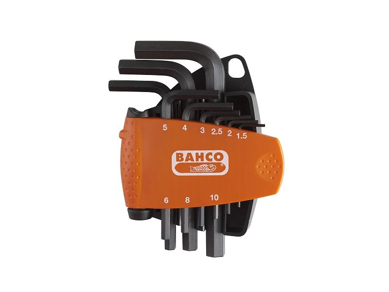 סט של מפתחות אלן קטנים / מיני בתפס פלסטיק גימור שחור, 9 חלקים, מטרי. מידות 1.5-10 מ"מ מחזיק קומפקטי עשוי 2 רכיבים המאפשר הרחקה בקלות של מפתחות כל הגדלים מסומנים על המחזיק כדי להבטיח בחירה בקלות חור לתלייה מקט:BE-9578,יצרן:BAHCO