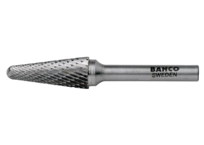 פצירות מסתובבות טונגסטן קרביד, קונית- קצה רדיוס • DIN: KEL • ראש גדול לעבודה בחללים צרים עם פינות עגולות • סוג מחרוקת/חיספוס: F = עדינה, M = בינונית, C = גסה BAHCO