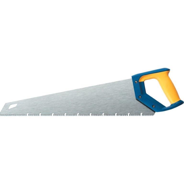 A coarse tooth handsaw suited for laminated boards, plasterboard and fast ripping cuts. 1mm thick rigid nose blade is designed to offer maximum blade stability and features triple ground teeth 8TPI for ultimate cutting performance.Suitab The soft grip handle with finger guide is designed to offer maximum comfort during prolonged use. Suitable for cutting hardwood, softwood, rough timber, board sheet, plasterboard and worktop.