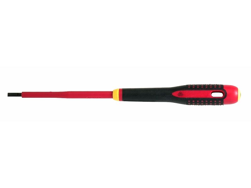 מברג מבודד לברגים עם ראש שטוח אשר פותחו על פי תהליךERGO מדעי לעבודה על ציוד חי עד 1000 וולט. ISO 2380, IEC 60900, מאושר על פי VDE ידית: ידית עשויה משלושה רכיבים, למקסום נוחות המשתמש והעברת הכוח להב מפלדת סגסוגת עם רמת ביצועים גבוהה ידית עם קוד צבע וסמל שלסוג הבורג מוטבע על הכיפה בקצה. מקטים:BE-8010S-BE-8259S ,יצרן:BAHCO