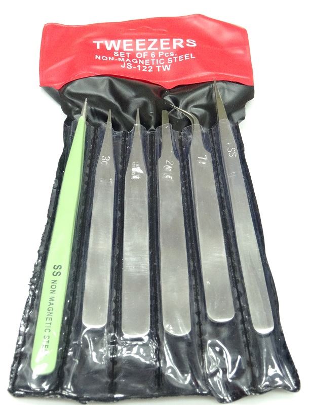 סט פינצטות לאלקטרוניקה 6 יחידות בנרתיק , מקט: JS-122TW